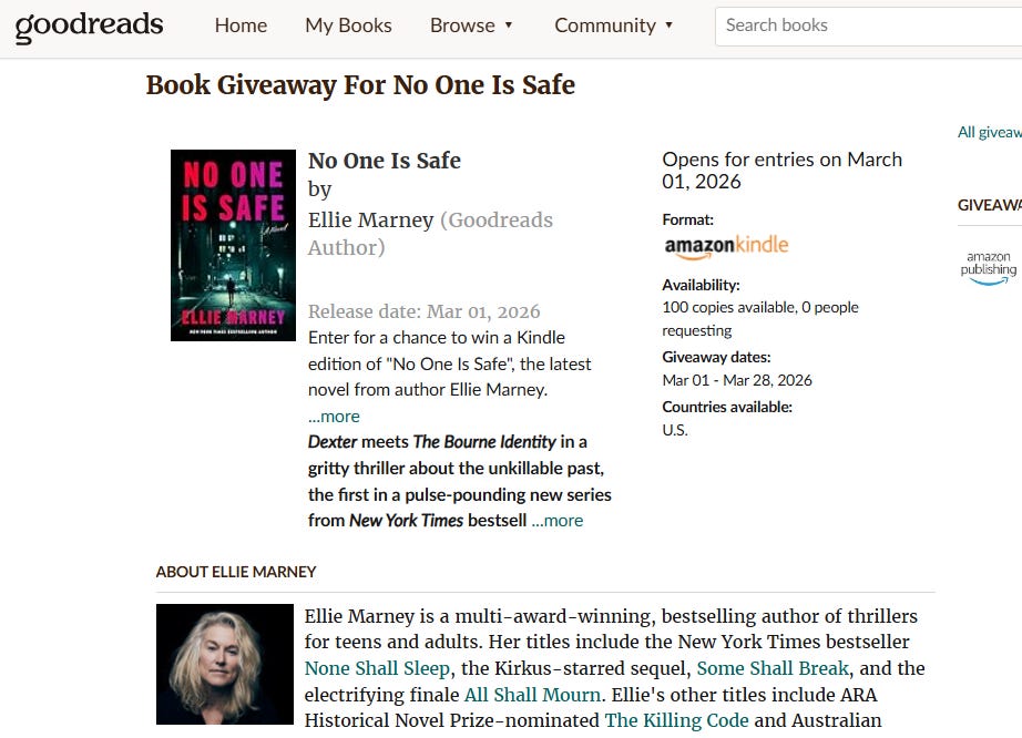 NO ONE IS SAFE GoodReads giveaway