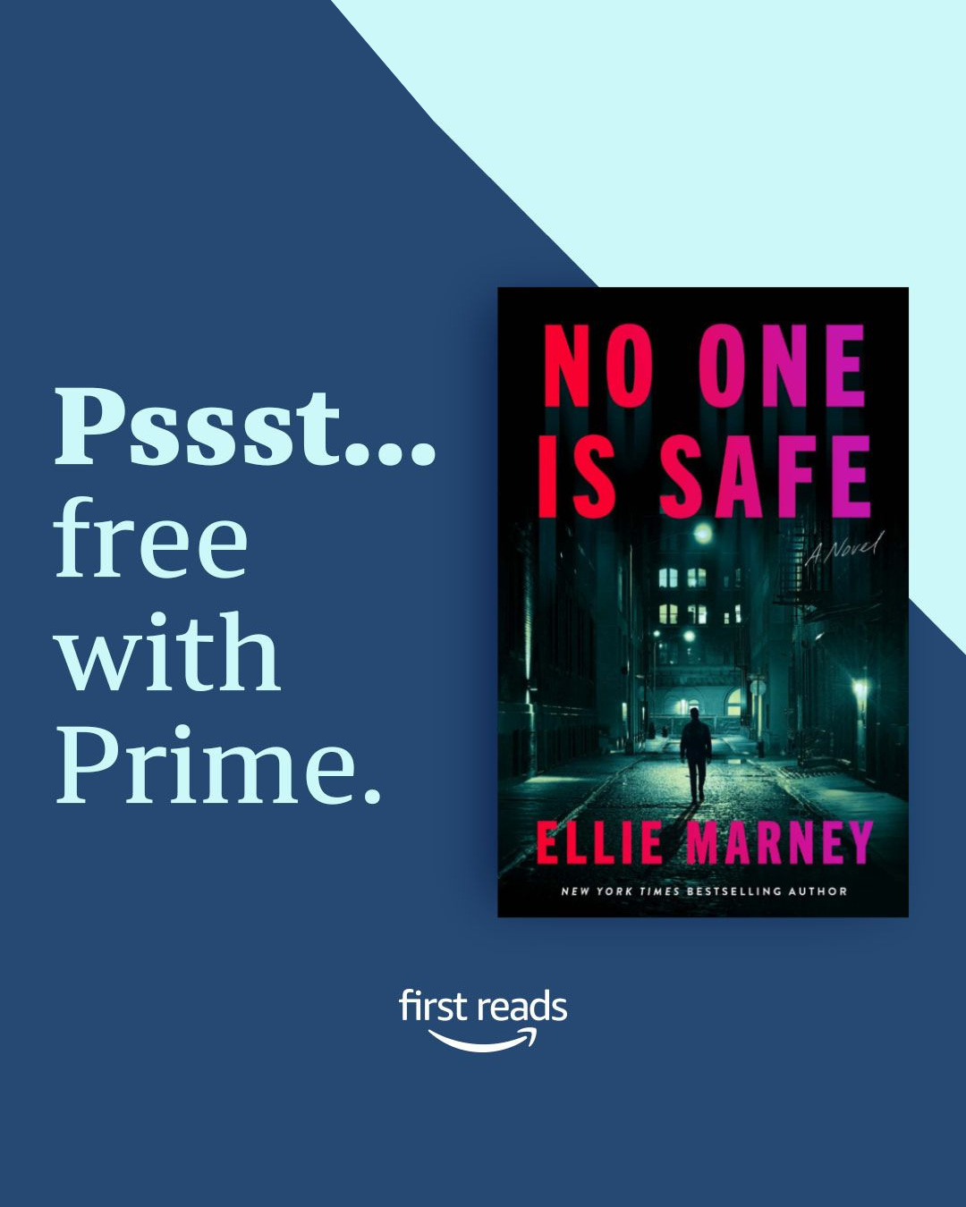 BUT…I found out this week that NO ONE IS SAFE was accepted into the Amazon First Reads program! Which means that for the entire month of February, Prime members can get the ebook for FREE as part of First Reads – and if you’re not a Prime member, you can buy the ebook at 60% off sale price for $1.99.